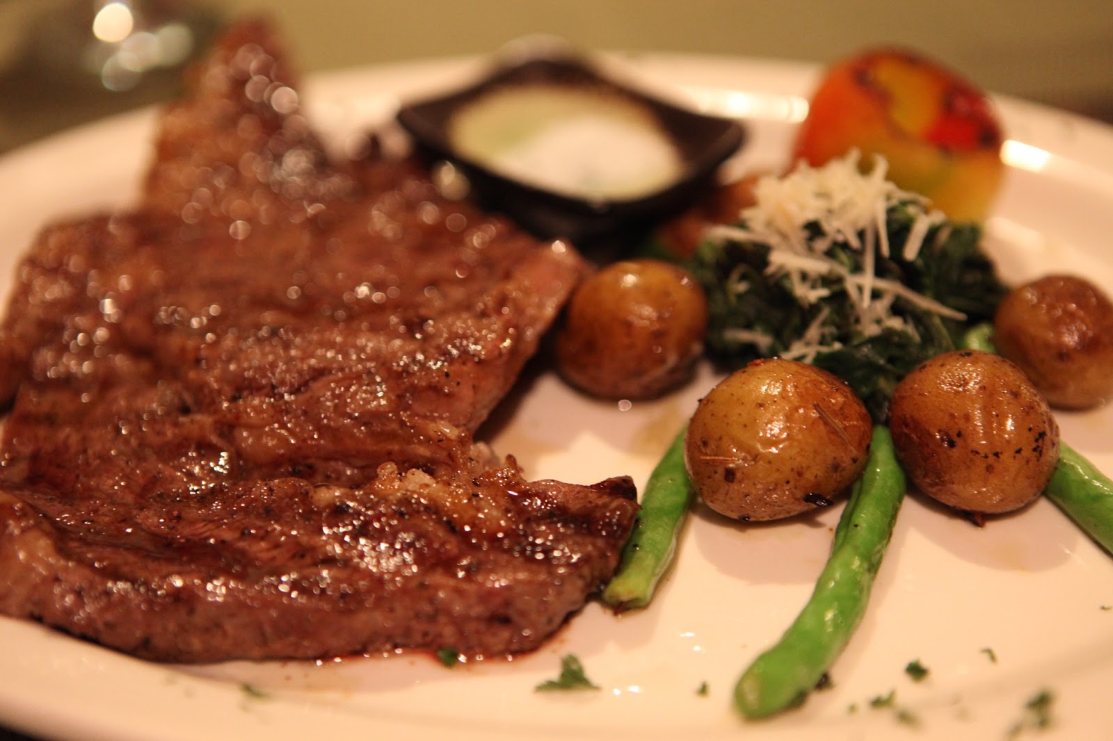 The rib-eye steak was certified Angus beef. No steak sauce was necessary since the steak was perfectly grilled and tenderly juicy. It came with baby potatoes and spinach on the side, both of which were also good.